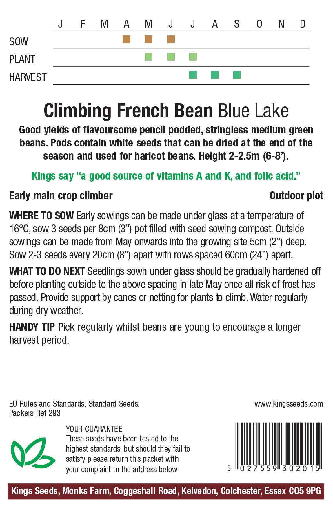 Climbing French Bean, Blue Lake