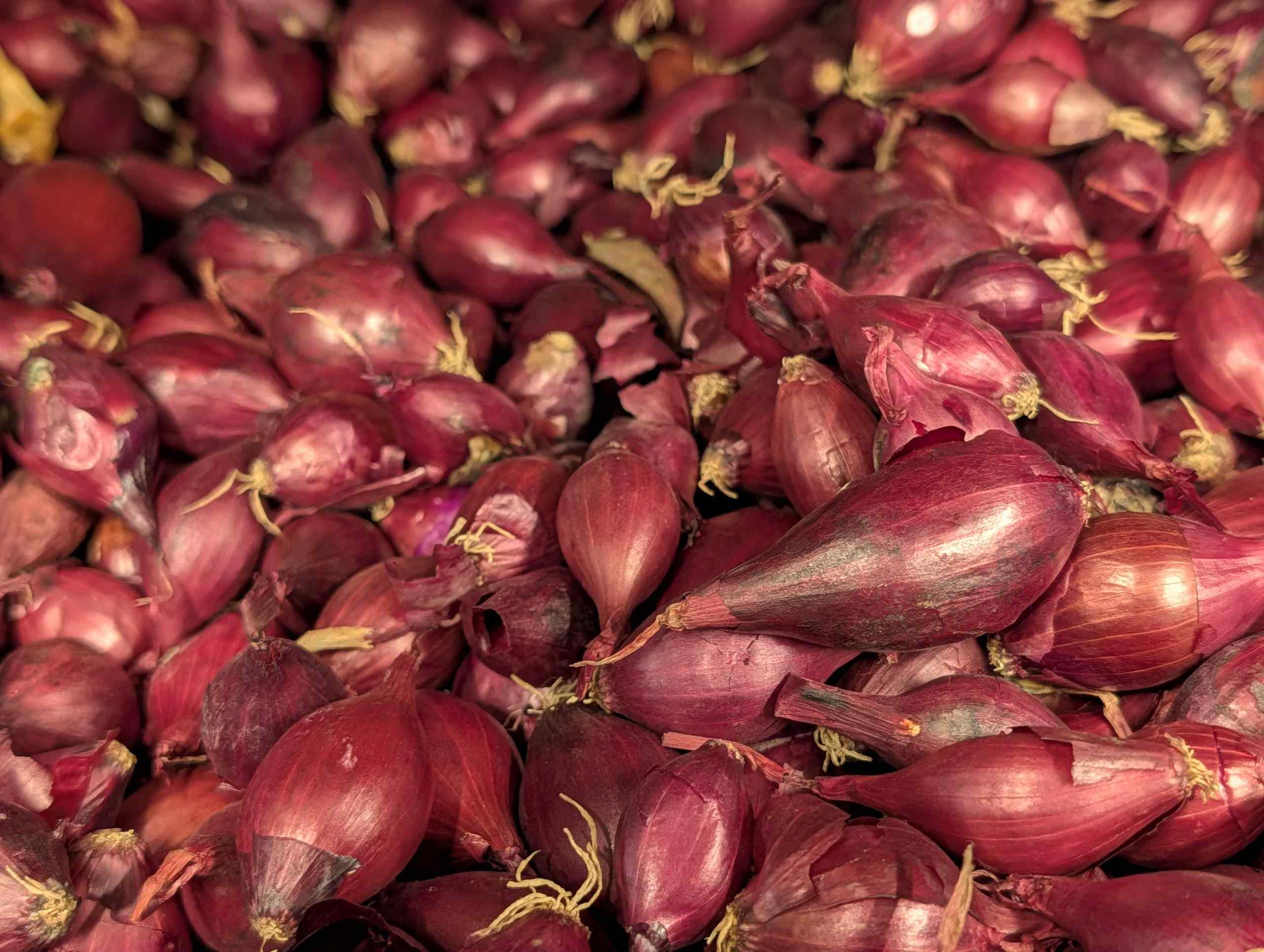 Red Baron is the best red-skinned variety. It boasts attractive, crimson-skinned bulbs when sliced reveal contrasting red and white rings.