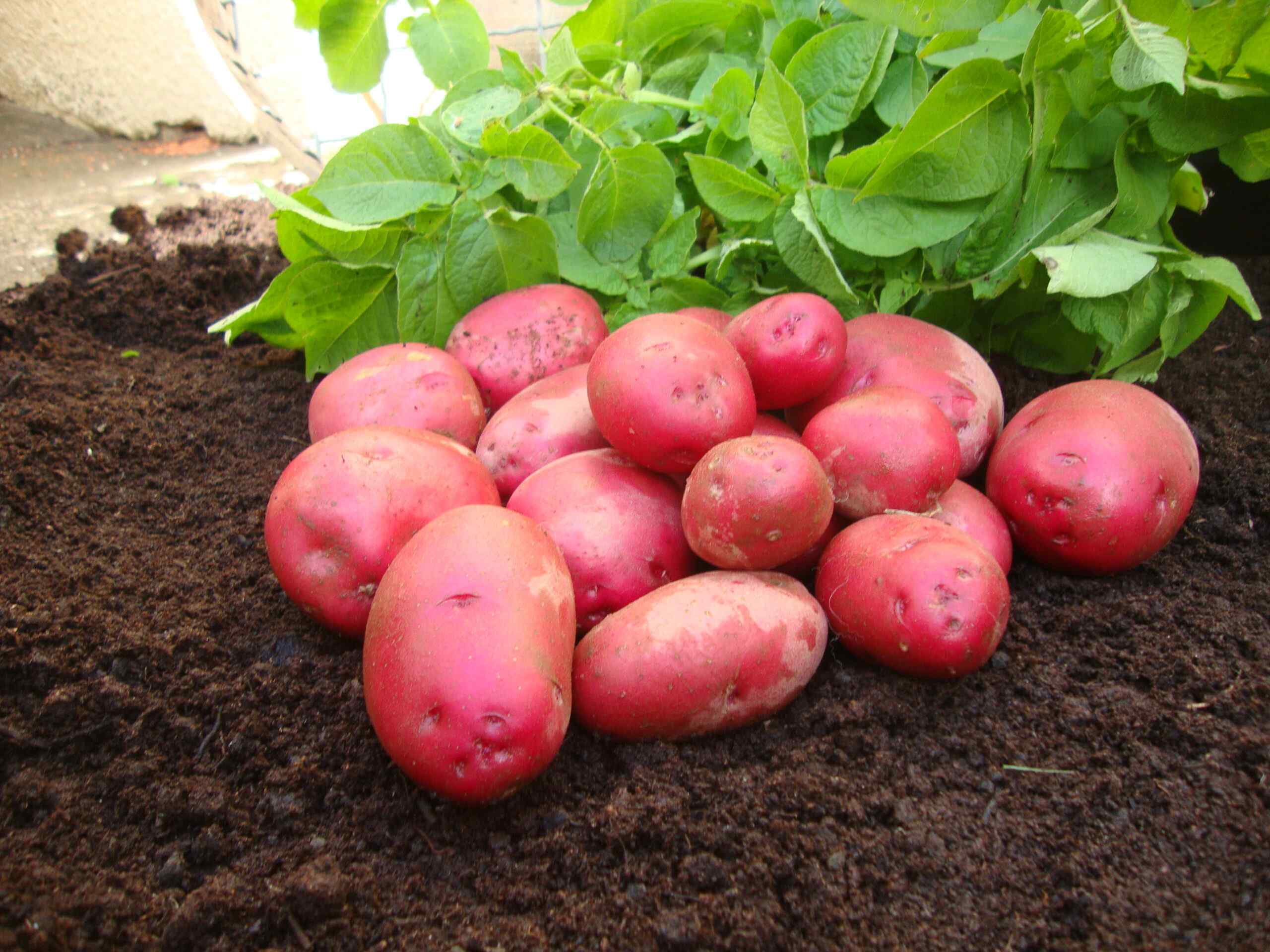 - Red-skinned tubers with pale yellow flesh and a slightly floury texture